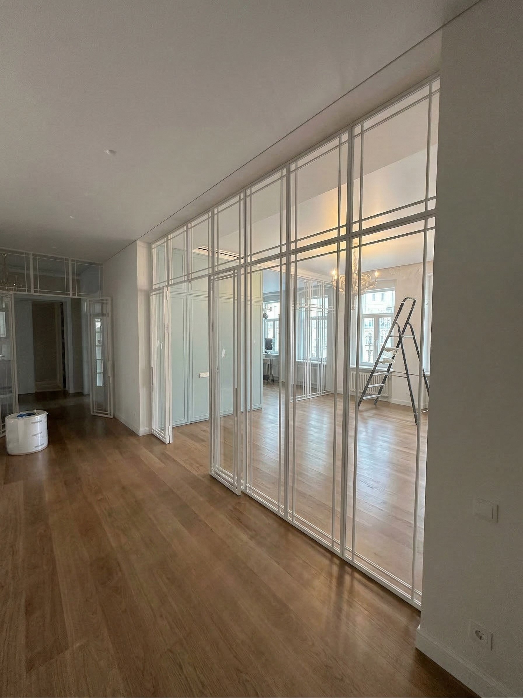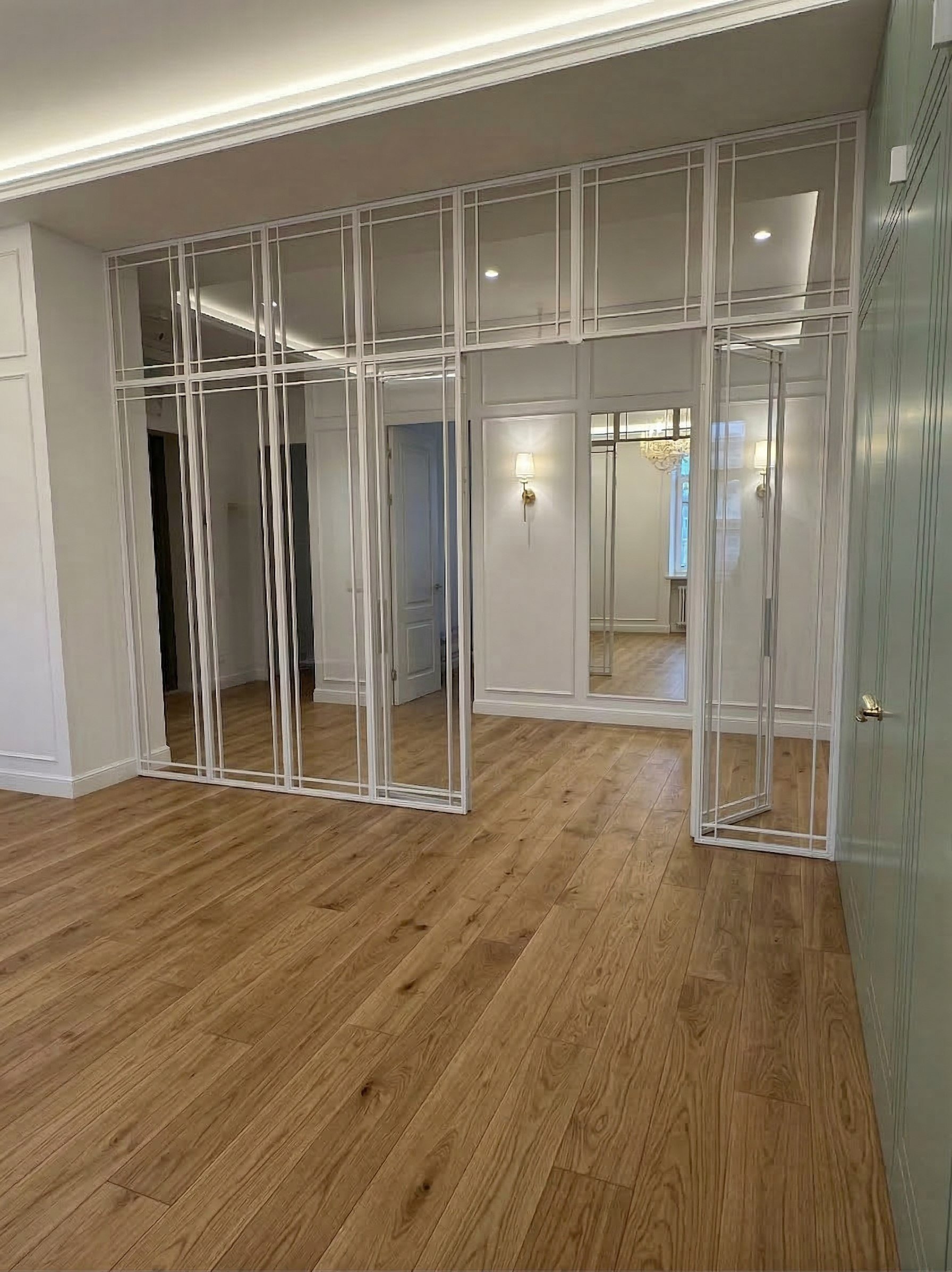 • Функциональность: Раздвижные и распашные конструкции позволяют легко изменять конфигурацию помещений, отделяя разные зоны для работы, отдыха или приема гостей.