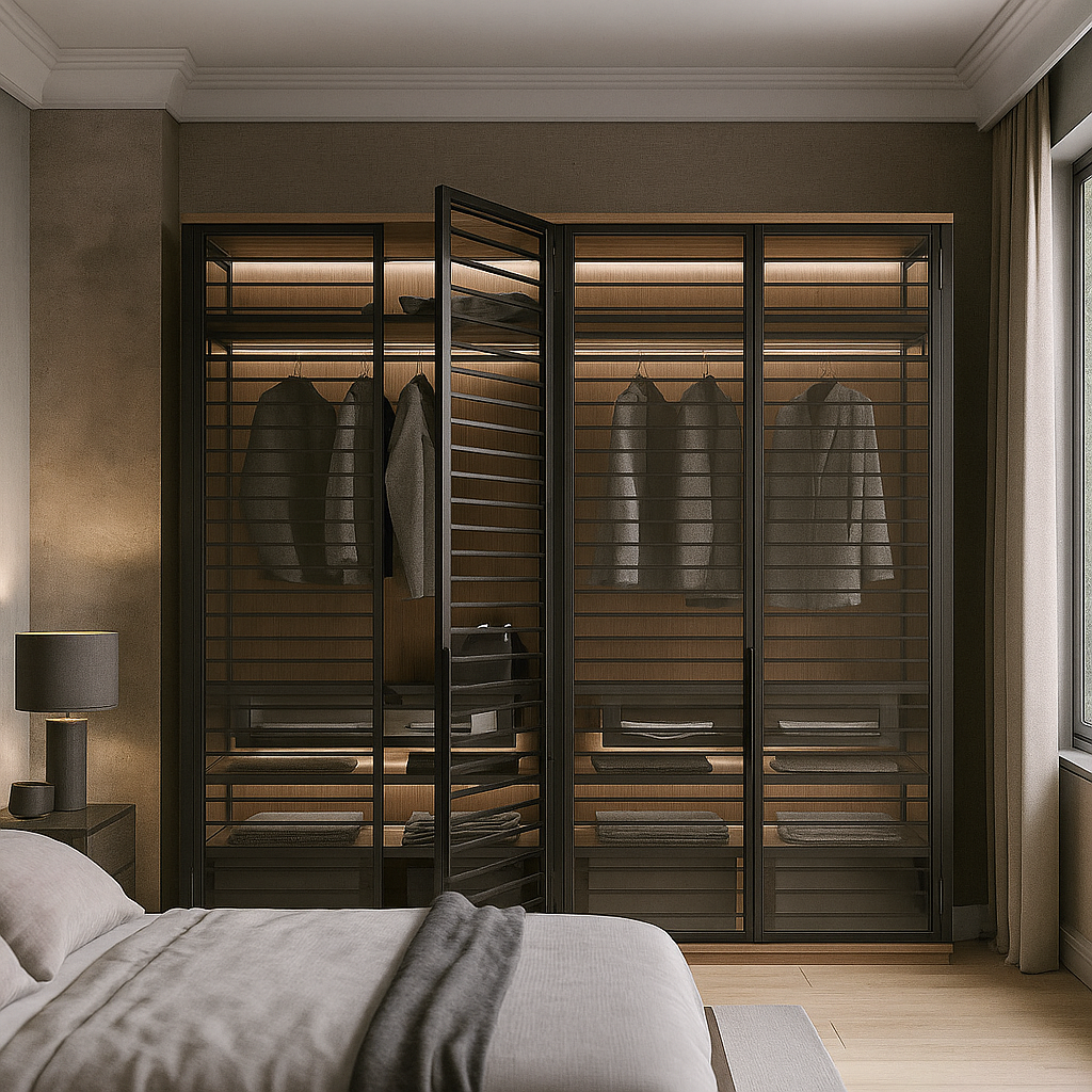 Распашные двери открываются почти на 180℃, что позволяет сэкономить место при открывании.