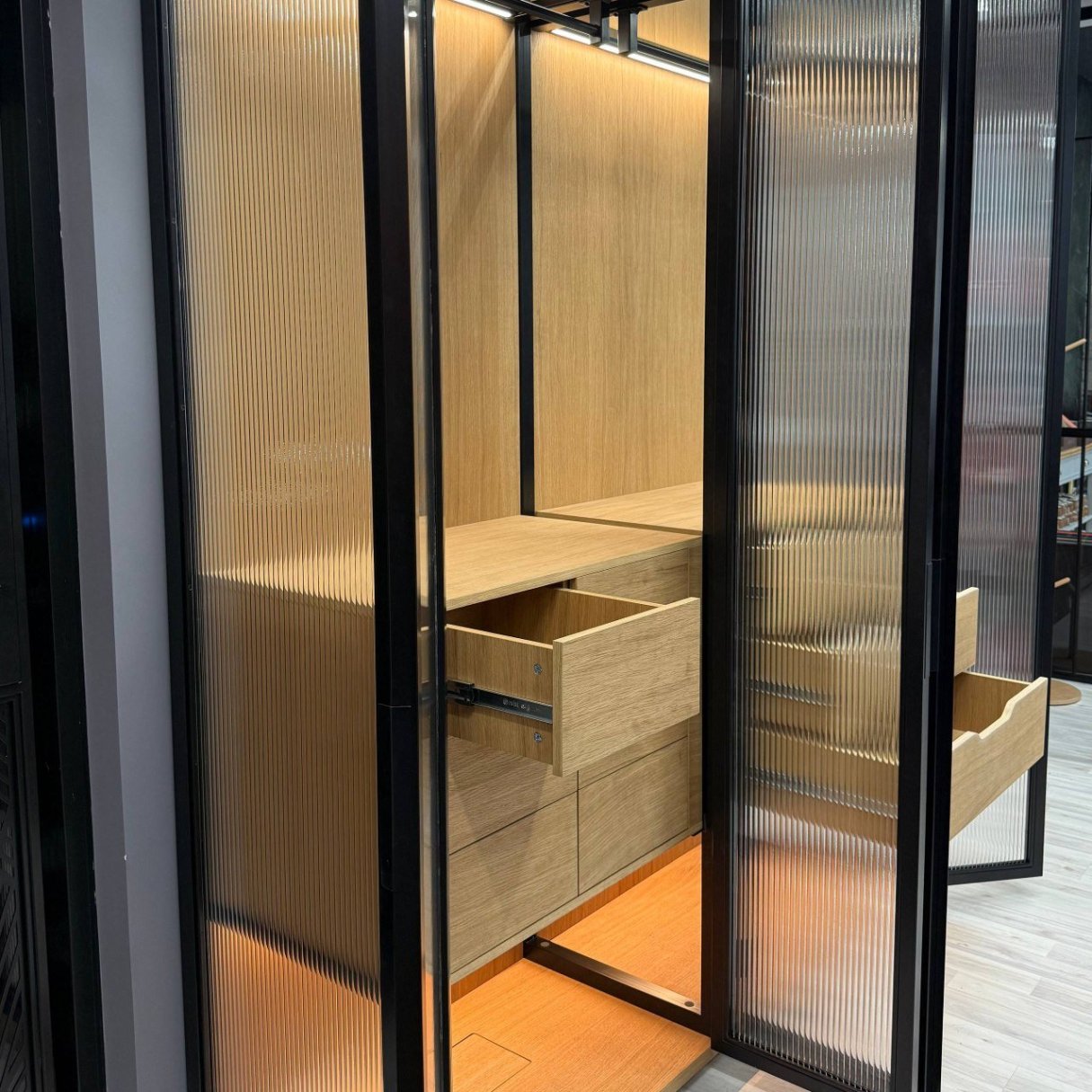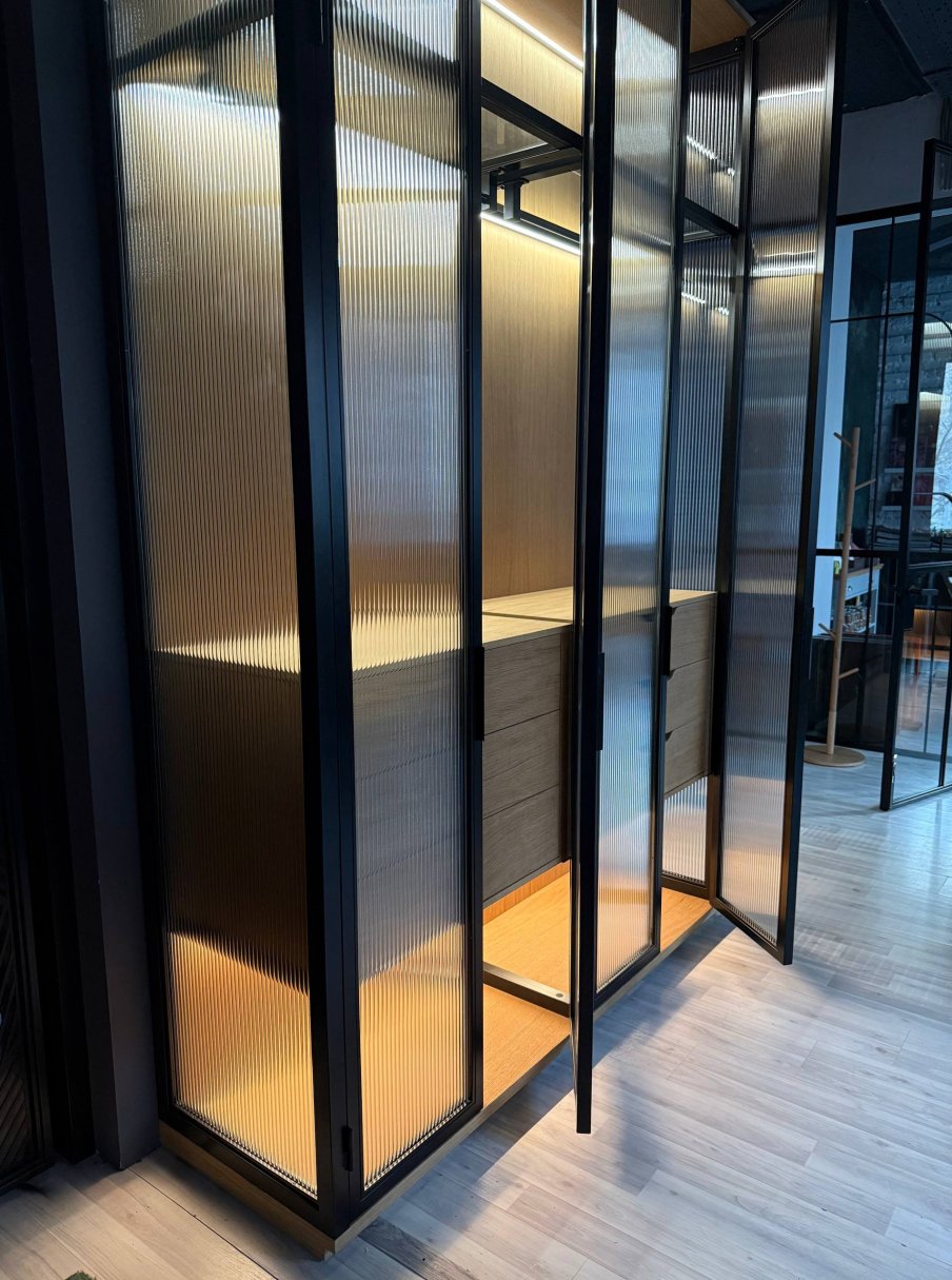 Гардеробный шкаф "Brookstone" с рифлёным стеклом – доступен для просмотра в шоуруме на Хлебозаводе #9